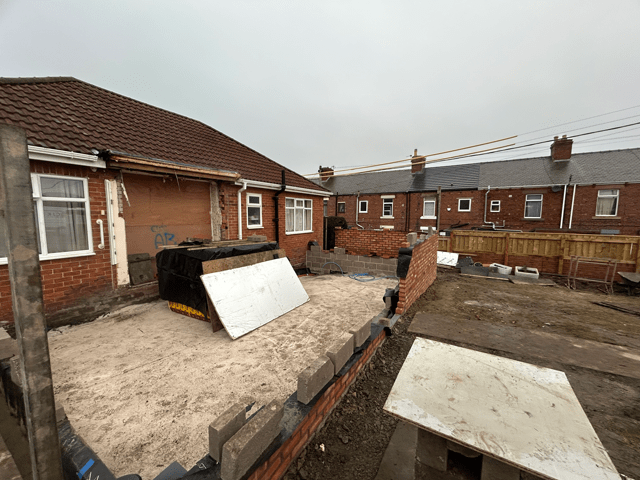 We’ve been asked to complete groundworks and masonry to a property in Stanley. As the pictures below show, the construction involved adding a hard surface area and a brick wall to the rear of the property.